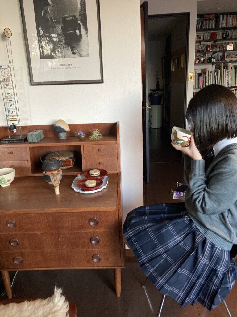 今では少しずつ買い集めてきたお道具を、リビングの片隅に置いた北欧ヴィンテージのライティングビューローにしまってあります。そこで家事と仕事の合間に自分のためだけに毎日のようにお抹茶を点てています。